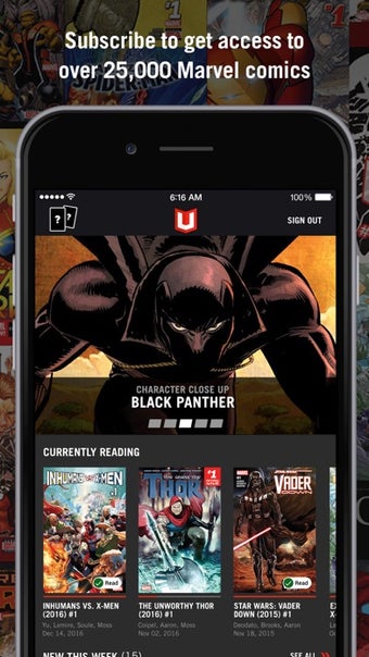 Marvel Unlimited funciona en iOS 12.1.2 o superior, la versión actual del software es la 7.29.0 y solo se puede ejecutar en inglés.